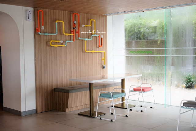 Kok saya jadi kepikiran pengen punya stool bar kayak di Pop Hotel itu ya, gemes banget sama warna dan modelnya.