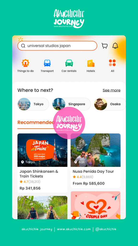 Selain itu juga pernah beli simcard luar negeri juga via Klook. Punya paket wisata yang oke menurutku, mulai dari penjemputan atau langsung ke titik temu wisatanya. Paketnya pun beragam dan menarik.