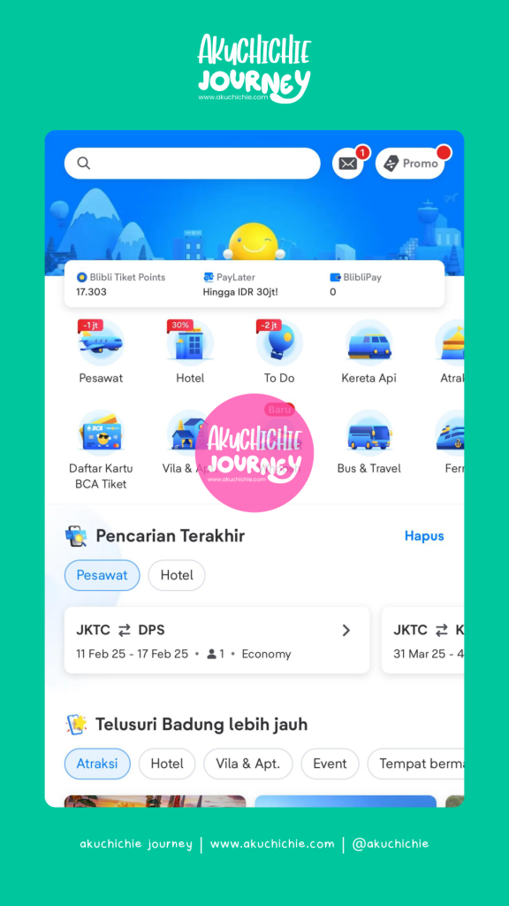 Fitur aplikasinya juga lengkap dan memudahkan kita juga mencari apa yang kita butuhkan untuk traveling. Traveloka juga sering menawarkan promo menarik nih. Jadi ingat salah satu temanku beli tiket untuk umrah mandiri di Traveloka.