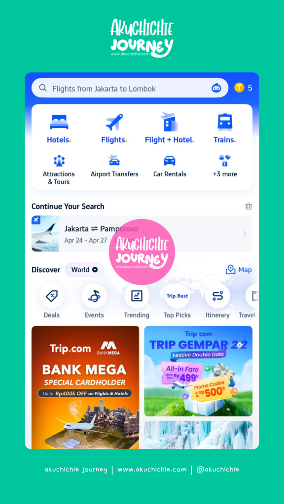 Gila sih Trip.com ini kadang harga tiketnya bikin pengin sering-sering liburan. Karena kalau kita pesan tuh suka ada cuma bayar berangkatnya saja dan pulangnya gratis. Tpai ada juga yang pulangnya tinggal tambah beberapa ratus ribu doang.