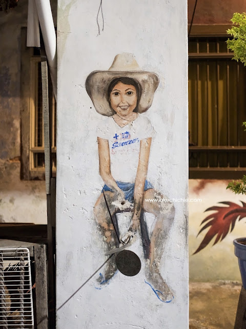 Gambar ini letaknya diseberangย Rope Walk Guest House.ย Walaupun gak banyak tempat mural yang bisa kami datangi tapi setidaknya kami senang sekali waktu itu seharian memang hunting foto termasuk mural di Penang ini.ย