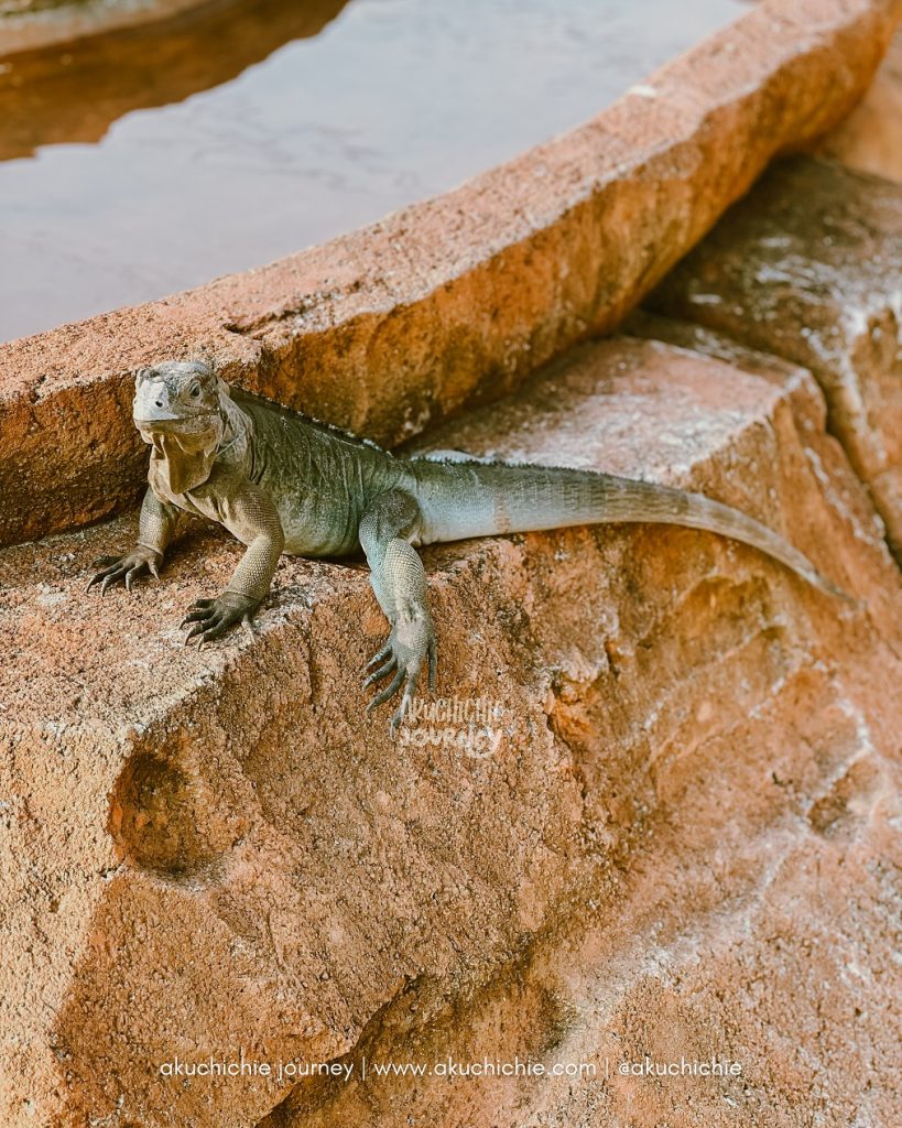 Ini Iguana sejujurnya gak gerak-gerak deh dia, sebal padahal selain bikin foto ini juga bikin video. Tapi dia tuh gak gerak sama sekali, jadi cuma melihat kita doang sih. Mager mungkin dia karena cuacanya juga panas banget.