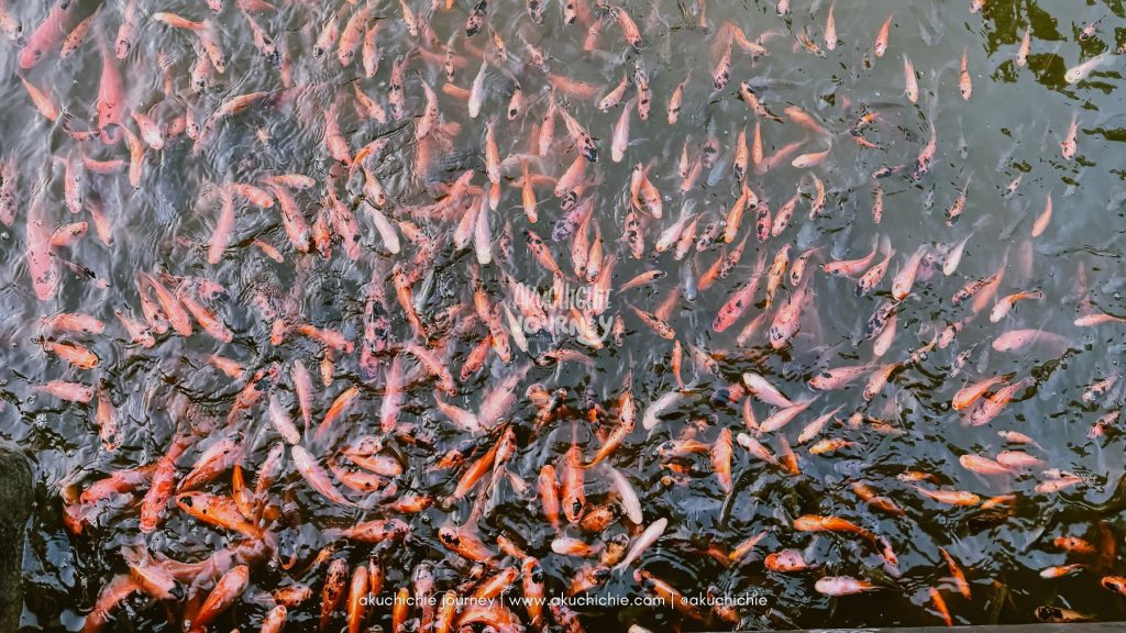 Setelah selesai menonton pertunjukan, karenan kit amasih punya makan untuk ikan. Jadi pas lewat jembatan tak lupa juga kita kasih ikan-ikan ini makanan. Memang selalu menyenangkan lihat ikan-ikan berebut makanan.