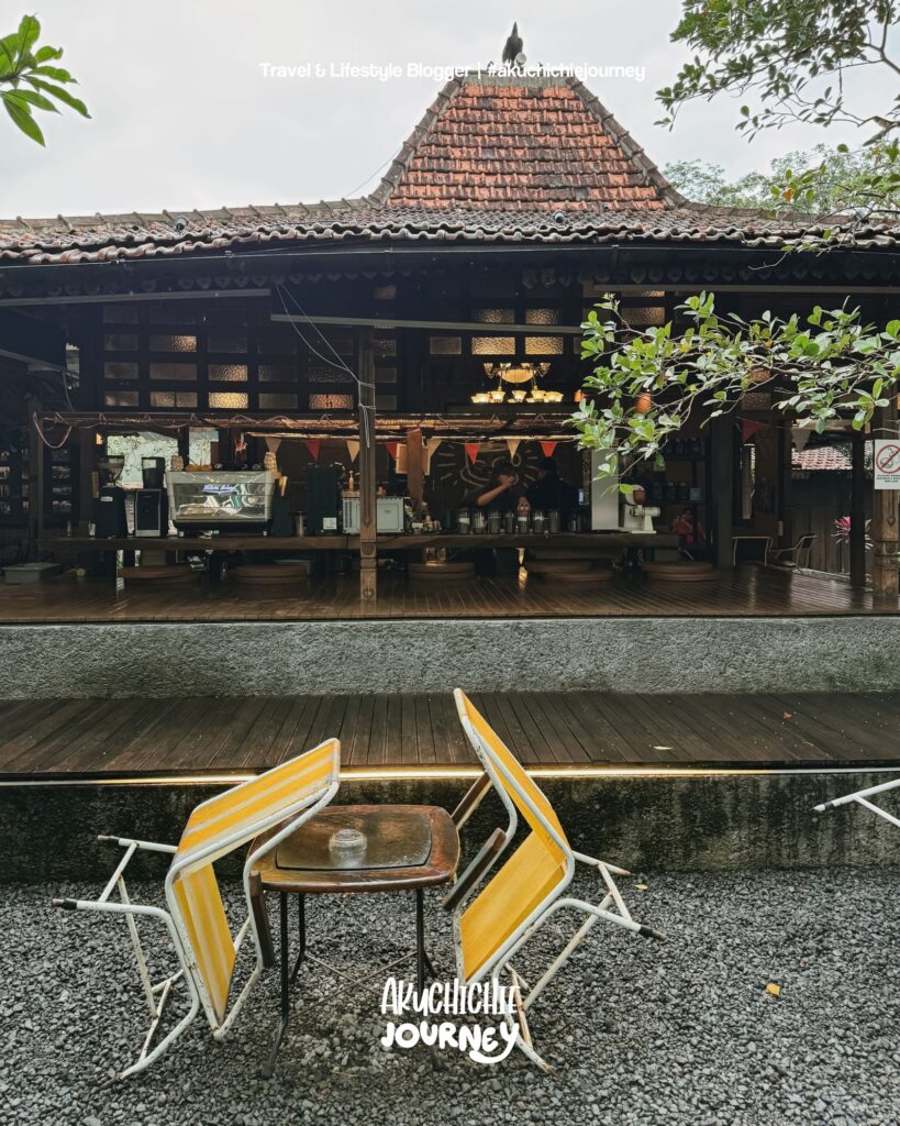 Memang pas banget deh, waktu perjalanan dari Ndalem Klangenan ke sini sedang hujan deras jadi menanti hujan reda sambil menikmati kopi dulu. Padahal di Yogya banyak kedai kopi baru dan belum saya datangi.