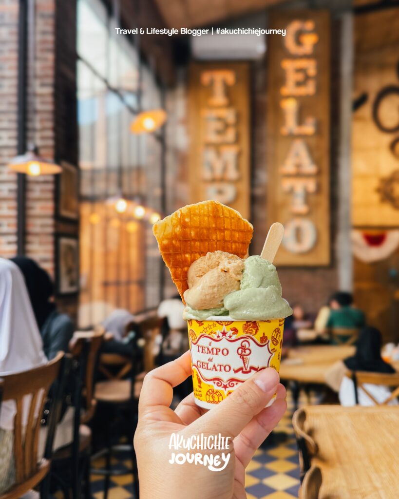 Kelar eksplor Prawirotaman dan jajan pernak-pernik, kami ke Tempo Gelato buat ngisi asupan dulu sebelum makan siang. Karena kita pergi bukan musim liburan jadi gak terlalu ramai di sini. Ingat banget awal-awal dulu selalu ramai dan bahkan sampai waiting list.