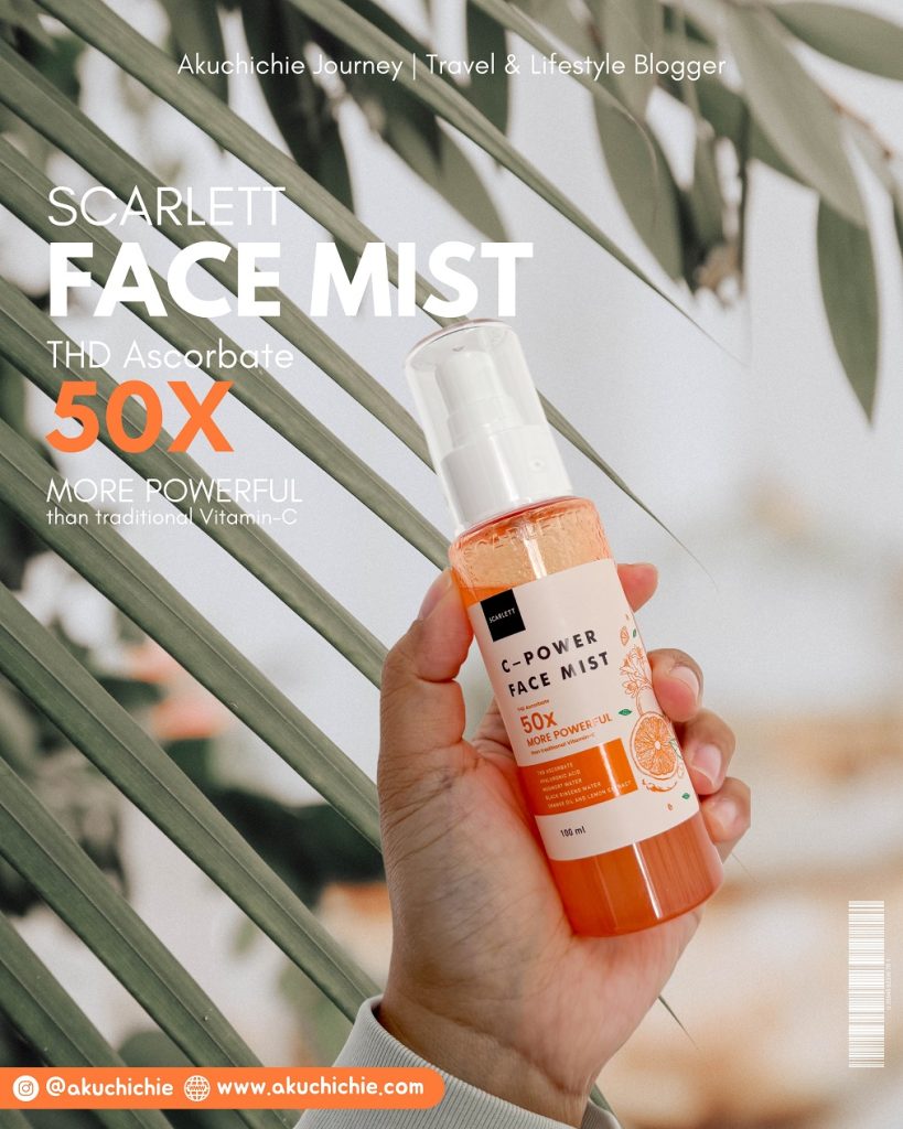 Aku kalau lagi bepergian, bawa skincare dasar sama yang multi fungsi. Jadi gak ribet pakai atau bawanya. Btw, kemarin aku juga baru nyoba Scarlett C-Power Series. Suka sama Face Mist-nya. Baunya itu lho. Seger banget