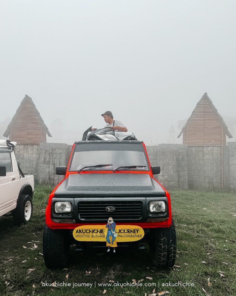 Keseruan kalau naik Jeep gini tuh, waktu dari jalan pertama tutupnya dibuka. Eh pas di tengah jalan mulai hujan dong, akhirnya melipir sejenak untuk menutup mobilnya. Benar-benar experience yang menarik sekali.
