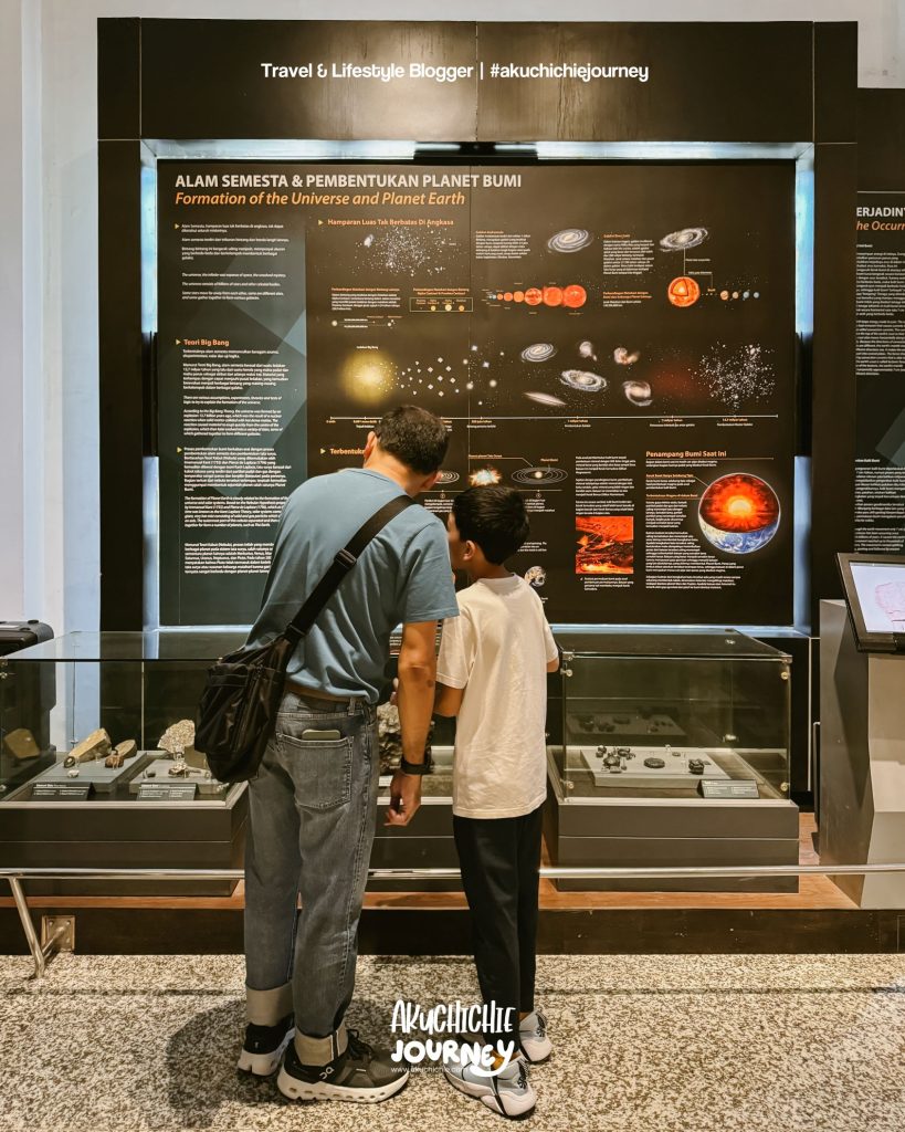 Kita mulai dari ruang geologi yang mana ini sepertinya menjadi ruang favorit anakku deh. Karena dia lebih betah berlama-lama di sini dan selalu melihat penjelasannya secara detail.