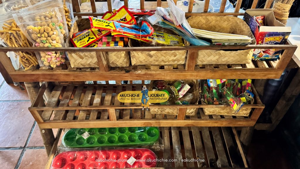 Di sini juga sedia cemilan jadul gitu, asli deh ini tuh cemilan dan jajanannya mengingatkan kita juga sama rumah nenek. Tentu kemarin kami beli kue yang ada gula warna-warni itu dan kerupuk.