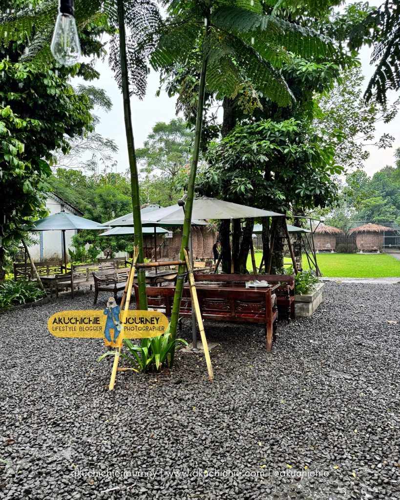 Kepikiran nanti deh sehabis makan baru mau keliling sambil moto-motoin area outdoornya. Eh pas lagi makan malah hujan deras, sampai kita selesai belum berhenti juga.