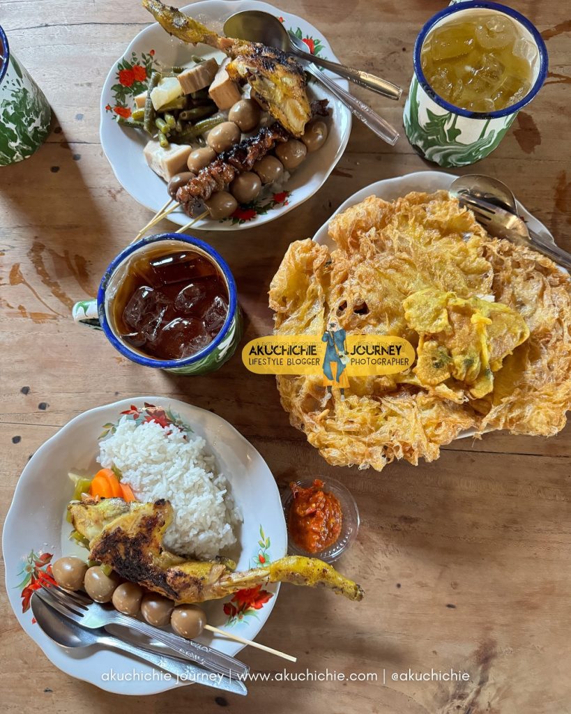 Sementara pak suami, memilih nasi putih dengan sayur lodeh, ayam bakar, sate telur dan sate apa ya ini tuh kemarin saya lupa. Padahal pesan ini juga sih wakakakaa…