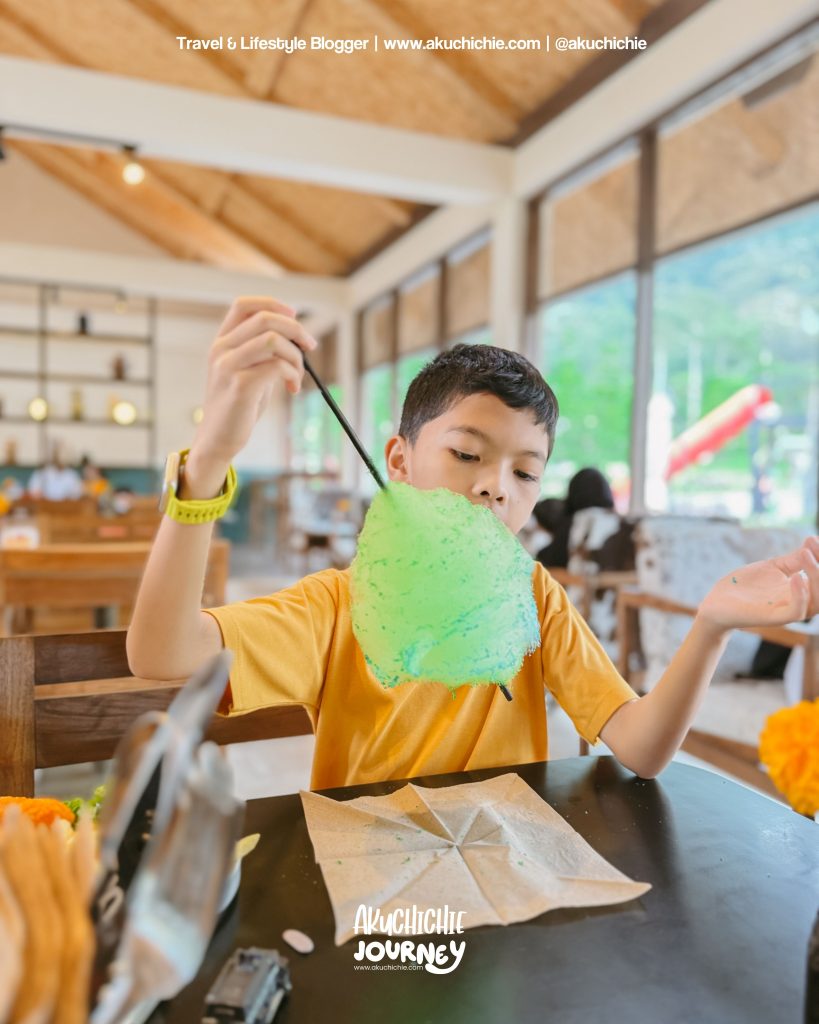 Kebetulan sekali waktu kita ke sana tuh sedang ada pembuatan cotton candy untuk anak-anak. Ini gratis untuk anak-anak, nanti tinggal pilih mau warna apa deh si cotton candnya.