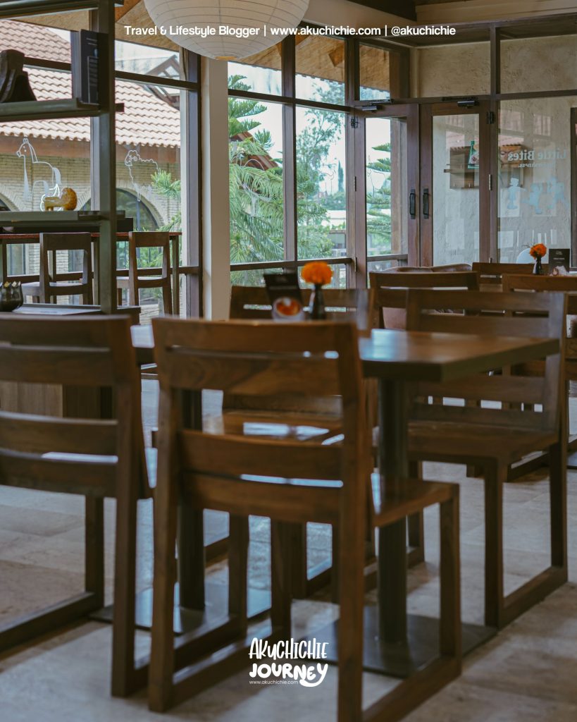 Mereka memiliki tempat makan indoor dan outdoor, tapi kalau kita kemarin pilih yang indoor karena pengin sekalian ngadem. Padahal ya di luar pun juga gak panas sebenarnya.
