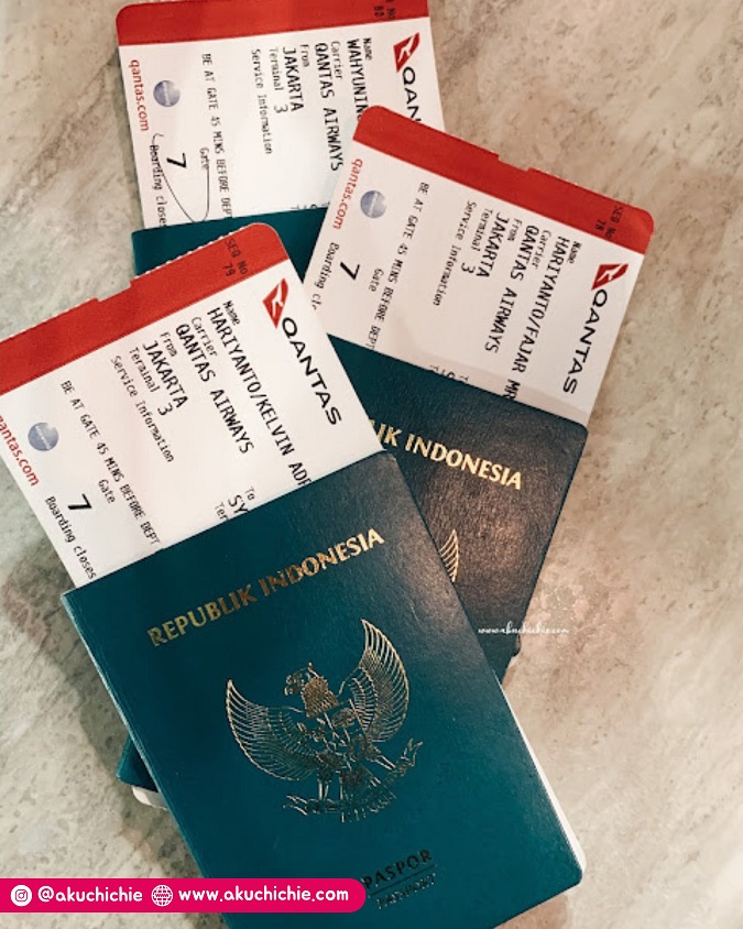 Nah, jam penerbangan penting nih karena menentukan si kondisi nanti selama di pesawat. Kami memilih penerbangan malam dari Jakarta, biar nanti sampai di Sydney jam 07.00 pagi. Perjalanan Jakarta-Sydney kurang lebih 7 jam, jadi anggap saja dipesawat itu bobok malam dan bangun pagi sudah di Sydney.