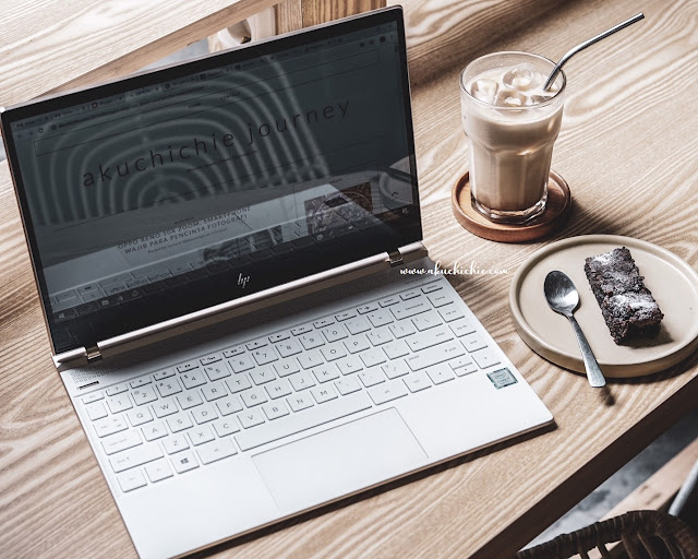 Karena memang tujuannya mau ngopi dan ngemil, jadi saya pesan es kopi susu dan brownies cokelat yang enak banget ini.