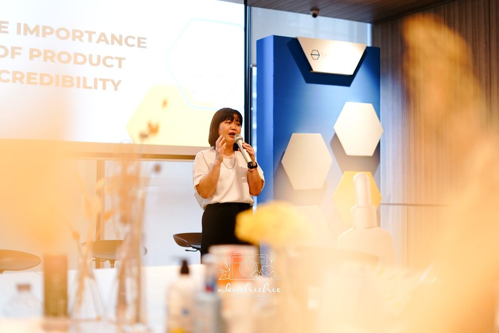 Bicara mengenai kredibilitas produk, Apt. Theresia Sinandang S. Farm, Head of Skinproof memberikan pemaparan bagaimana pertumbuhan industri kosmetik dan pentingnya memahami produk dari sumber yang kredibel dan terpercaya.