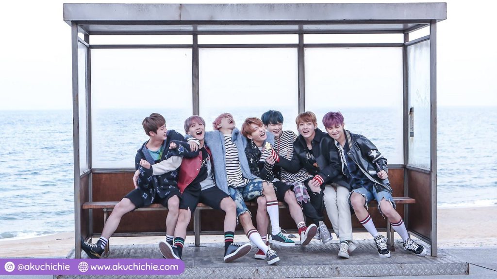 Segitu besarnya ya pengaruh BTS, sampai jejak mereka dijadikan tempat wisata. Bahkan di tanggul pun jadi. Aku pernah lihat temanku berfoto di halte bus Pantai Hyangho, dia sebut-sebut BTS di captionnya. Awalnya aku nggak tahu apa hubungannya halte ini dengan BTS. Haha. Ternyata tempat BTS berfoto untuk cover albumnya. Mantap sekali.