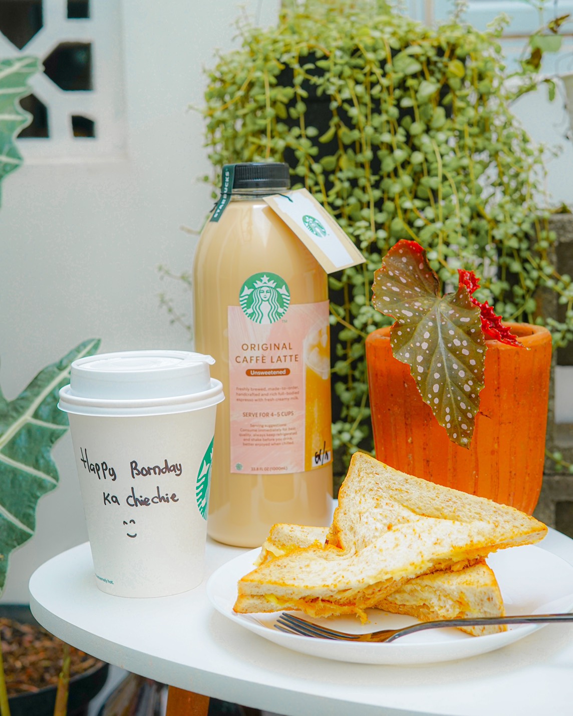 Setiap pagi memang selalu ngurusin anak-anak hijau dan kebetulan kemarin itu sedang mengganti beberapa pot tanaman karena baru adopsi beberapa anak hijau dari seorang teman. Lagi asik-asik main dipekarangan rumah yang luasnya 4L, lu lagi lu lagi datanglah abang ojek online membawakan 2 kantong Starbucks.