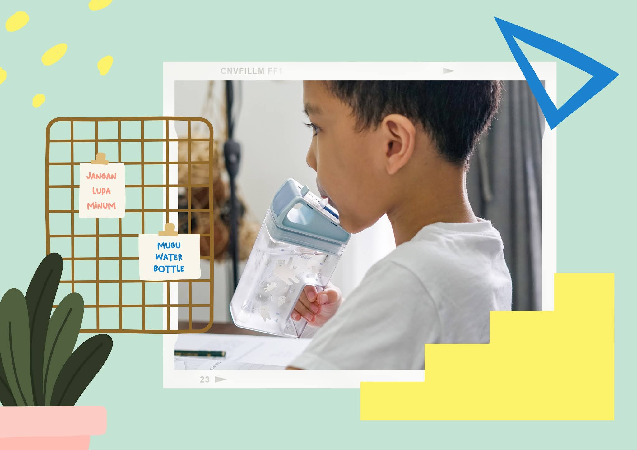 - Pastikan minum secara teratur di rumah terutama saat sedang pembelajaran jarak jauh (PJJ), saya selalu menyediakan minum saat belajar dengan menggunakan botol minum.