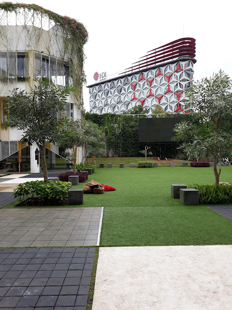 Setiap kali lewat depan sini pasti saya terkesima dengan konsep bangunannya dan bikin penasaran pengen mampir. Yang selalu muncul dalam benak saya adalah “keren amat ini Partai Golkar bikin gedungnya bagus banget”.