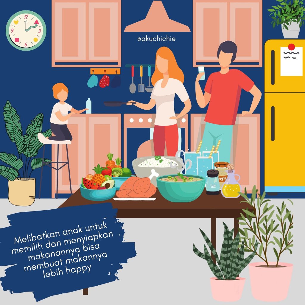 - Melibatkan anak untuk menyiapkan makanan di rumah, ini juga saya lakukan dan sekarang anaknya juga senang sekali kalau sudah mau menyiapkan makanan.