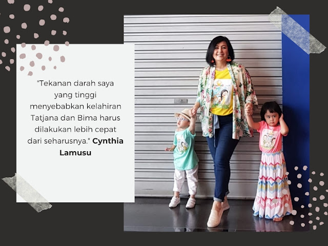Cynthia Lamusu, penyanyi sekaligus ibu dua anak kembar yang lahir prematur memberikan pengalamannya. “Tekanan darah saya yang tinggi menyebabkan kelahiran Tatjana dan Bima harus dilakukan lebih cepat dari seharusnya. Saat itu tekanan darah saya 170/100, sangat membahayakan untuk saya dan anak-anak jika tidak segera ditangani. Tatjana lahir dengan berat 2.12 kg dan Bima 1.24 kg. Tapi dengan dukungan yang baik dari tim dokter dan keluarga, serta pemenuhan nutrisi yang tepat, anak-anak saya dapat tumbuh dengan sehar dan ceria.” tutur Cynthia Lamusu.