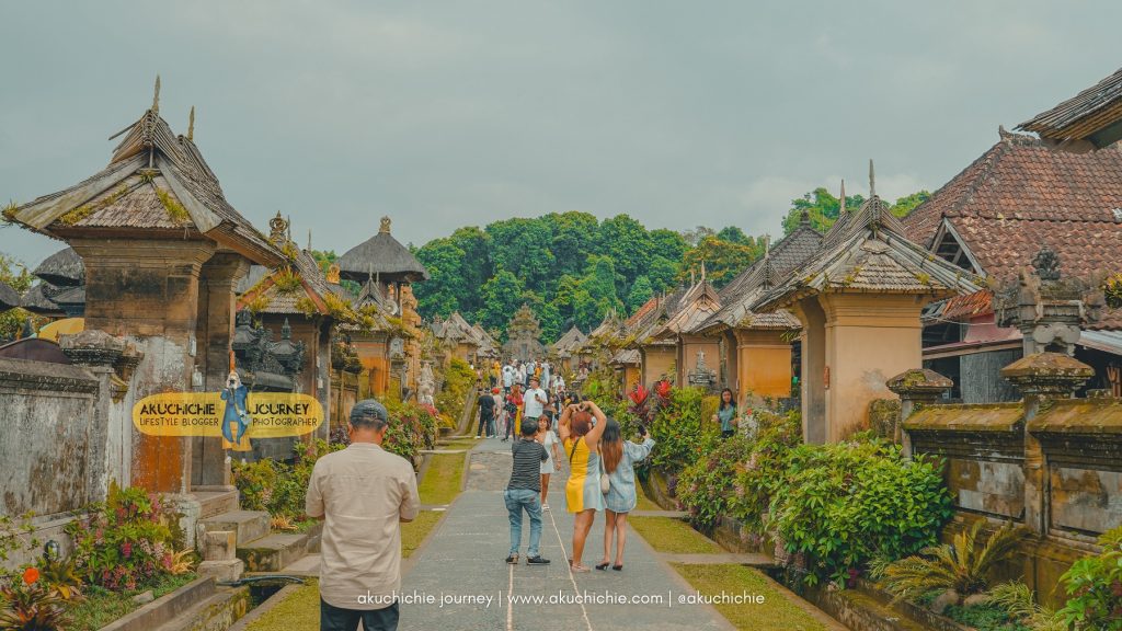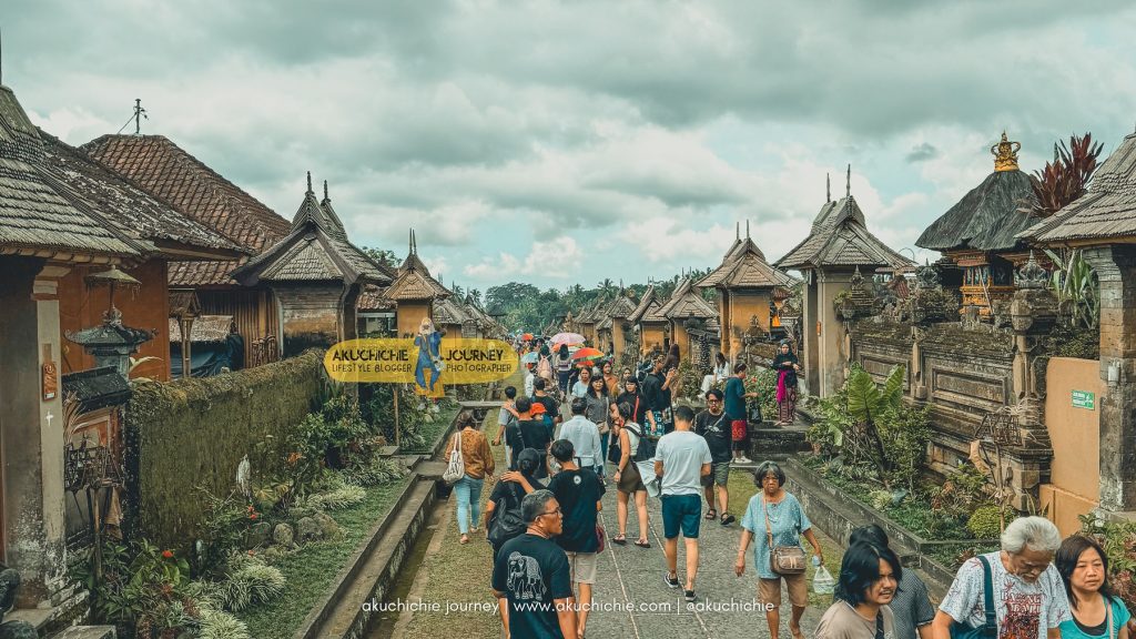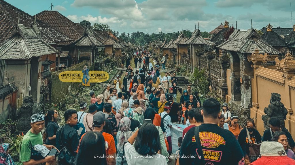 Ini pertama kalinya saya melihat foto Desa Penglipuran yang suasananya ramai. Sampai saya sempat berpikir, mungkin setiap harinya ada batasan jumlah pengunjung supaya suasana gak terlalu ramai. Berarti memang sama kayak tenpat liburan lainnya, ya. Kalau mau sepi, jangan saat musim liburan.