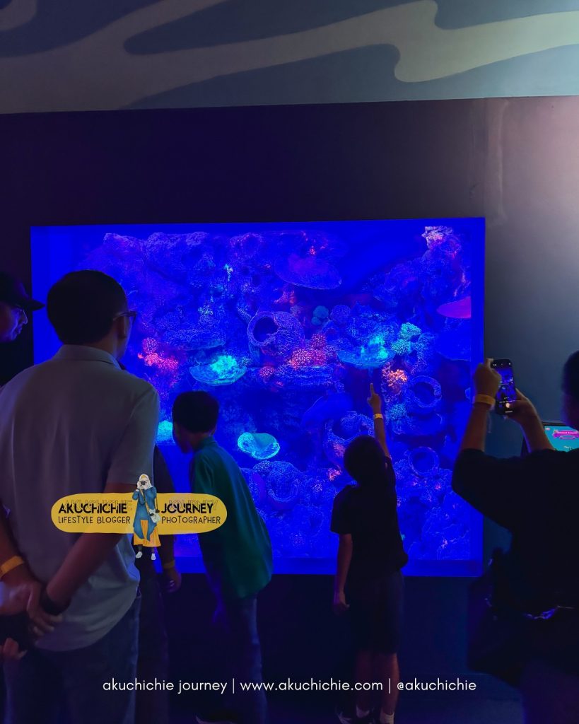 Kita diajak untuk melihat kerajaan kuda laut, ini tuh kemarin akuarium kuda lautnya ada beberapa ya. Merupakan salah satu ikan yang unik karena satu-satunya spesies dimana jantannya bisa “hamil”.