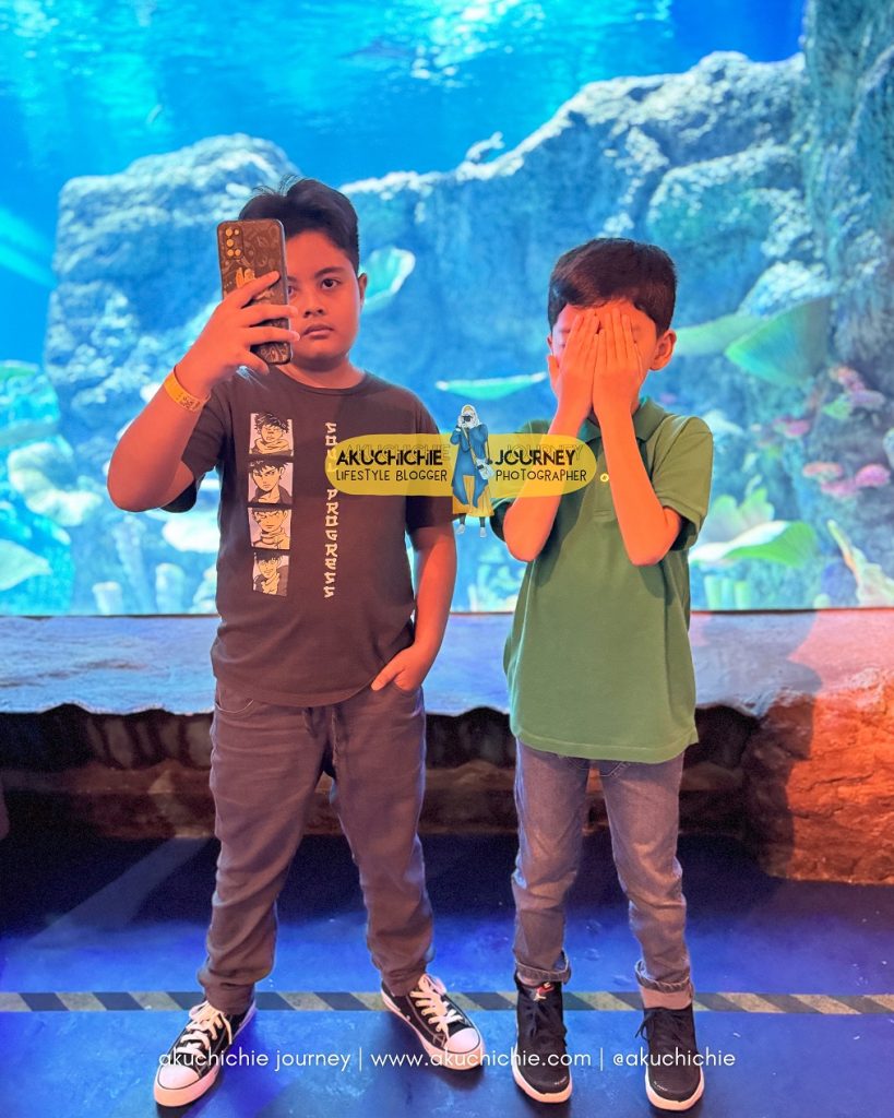 Ini juga merupakan salah satu journey yang ramai sekali dan ada juga beberapa teriakan anak-anak. Karena ini tuh kita berjalan diatas di atas kaca akuarium yang bagian bawahnya isinya hiu dan biota-biota besar.