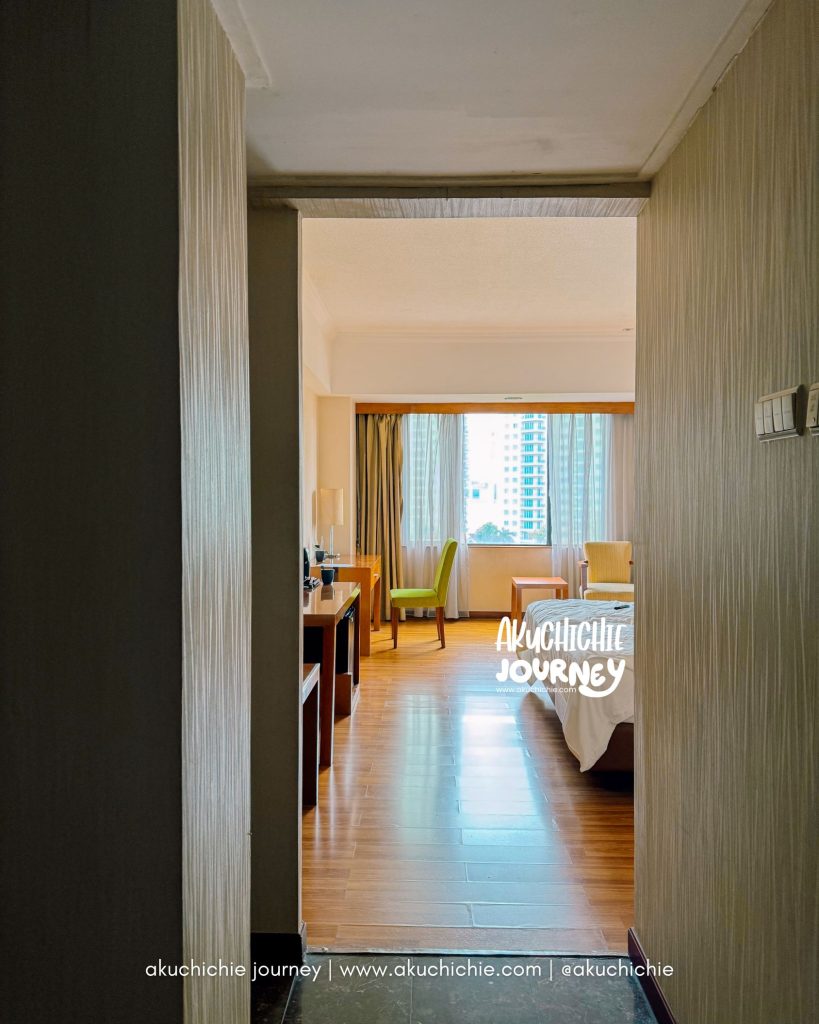 Jadi kemarin kita pesan tipe Deluxe King Room, tapi memang ketersediaan kamar pun gak banyak. Selain sedang ramai acara BWF dan juga ini pas long week end. Waktu check in saja ini sudah terlihat banyak sekali keluarga dengan membawa anak-anak.