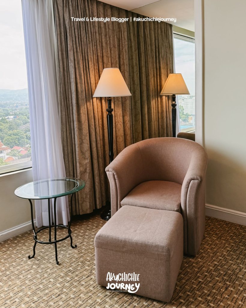 Karena memang hotel lama jadi memang furniturnya tuhya masih jadul ya. Tapi buat kami sih okelah ini untuk staycation karena masih hitungan terawat. Tapi kamarnya tuh bersih dan juga selama kita di sana setiap pagi dibersihkan.