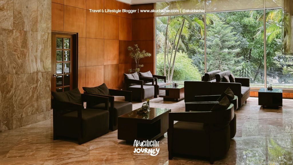 Kita mulai ceritanya dari lobby dulu nih, kalau lobby sudah pasti besar ya karena memang hotelnya besar dan termasuk hotel bintang 5. Kalau furnitur dan bangunannya masih khas Aryaduta Bandung ya.