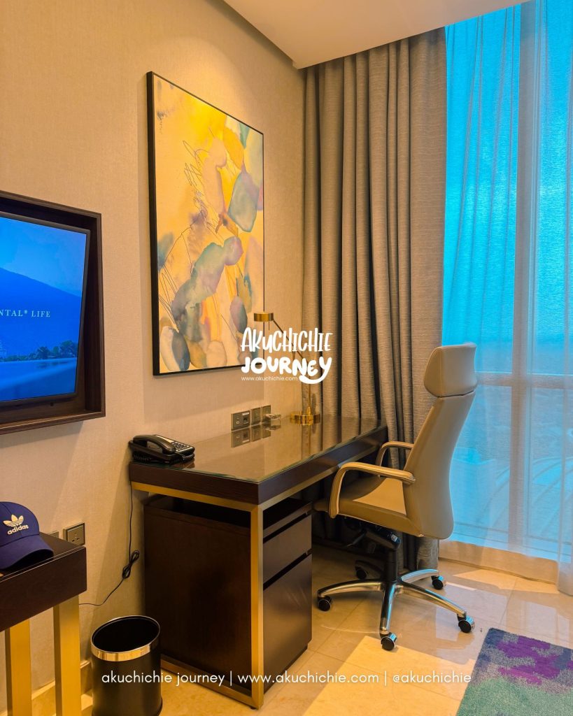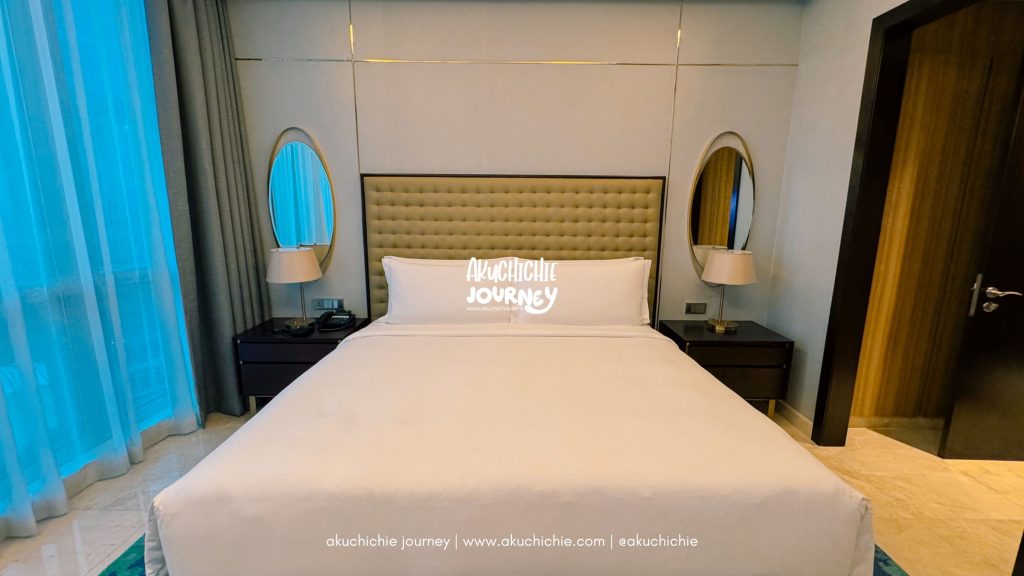 Ciri khas Intercontinental Jakarta bangetlah ini ya, modelan si tempat tidur dan interiornya memang cantik banget. Tempat tidurnya tuh besar jadi memang masih muat untuk kami bertiga.