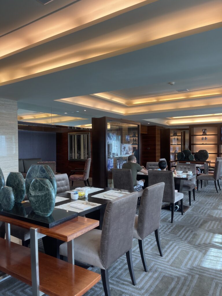 Waktu kami sarapan hanya ada 2 keluarga itupun hanya 1 keluarga dengan anak kecil, yang satunya belum ada anaknya. Tapi tak lama dari kita masuk, mereka juga sudah mau selesai makannya. Jadilah ini di Executive Lounge kita bertiga doang, selain itu ada 2 petugas hotelnya yang super ramah dan helpful banget.