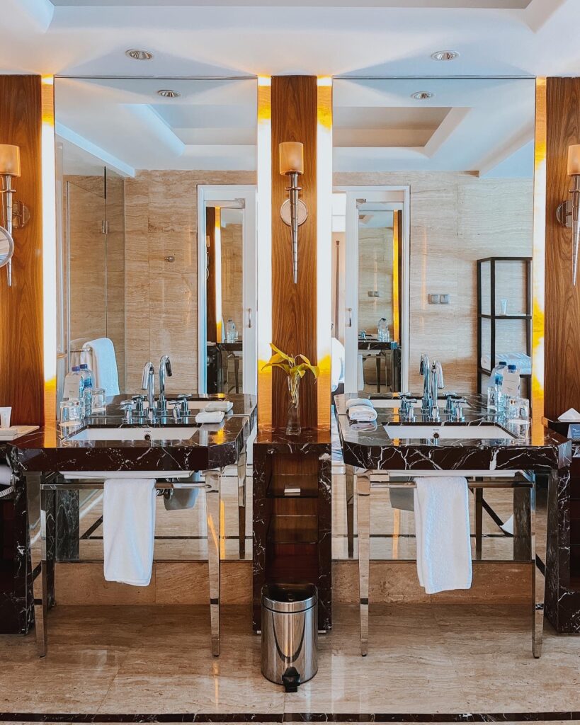 Kalau ada yang sudah pernah staycation di The Fullerton Hotel SIngapore, kamar mandinya diakan kacanya bisa automatic tuh. Nah kalau Kempinski masih belum gaes, jadi jangan lupa ditutup ya. Tapi aku suka bangetlah ini kamar mandinya si Kempinski Jakarta.