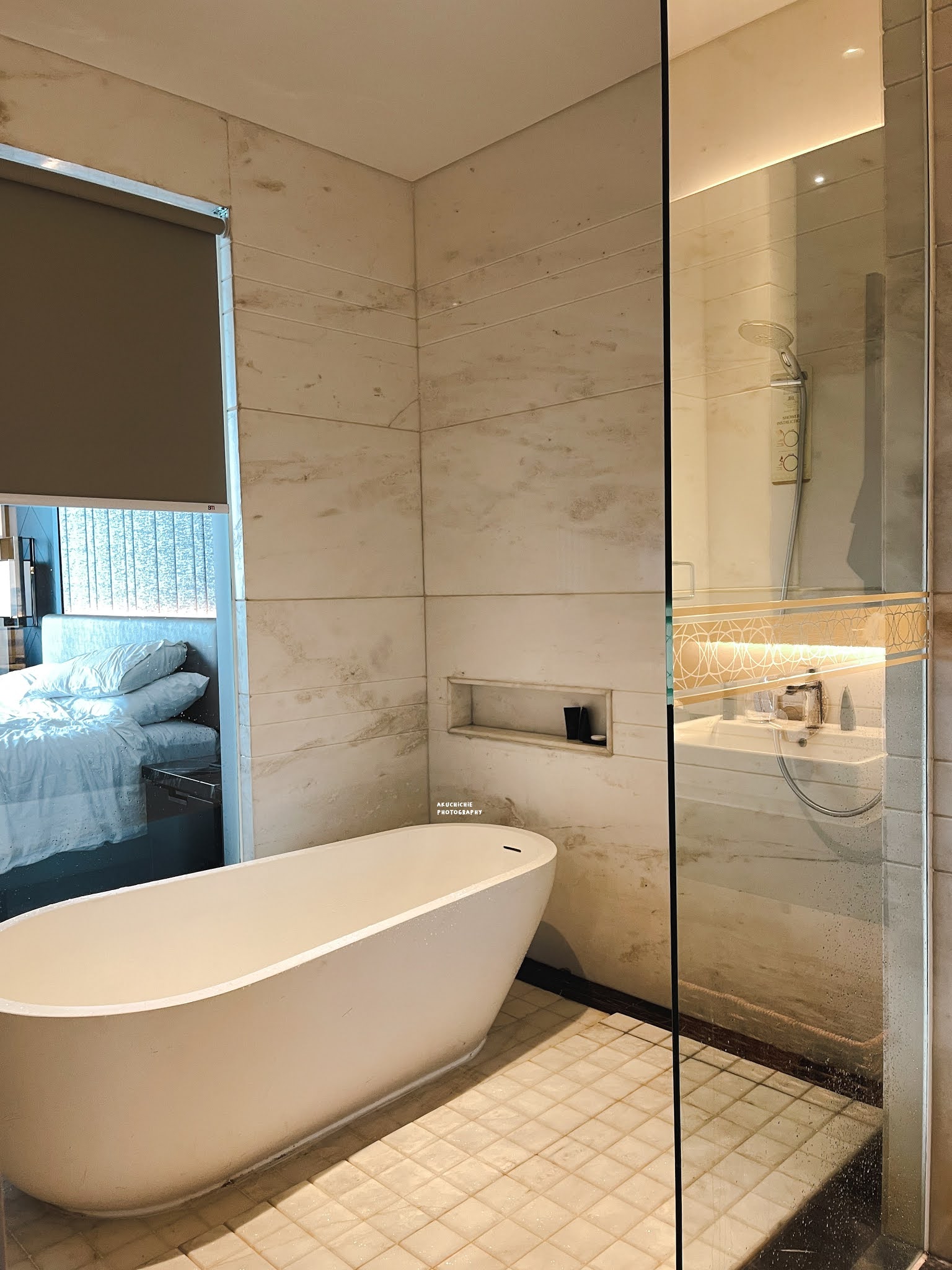Sayangnya ini bathup dan showernya gak dipisah, jadi satu ruang mereka tapi gpplah jadi kalau habis berendam bisa langsung bilas. Ini makanya menjadi salah satu alasan kalau staycation saat pandemi selalu memastikan kamarnya ada bathup jadi kalau pas gak bisa renang si bocil bisa berendam dikamar.