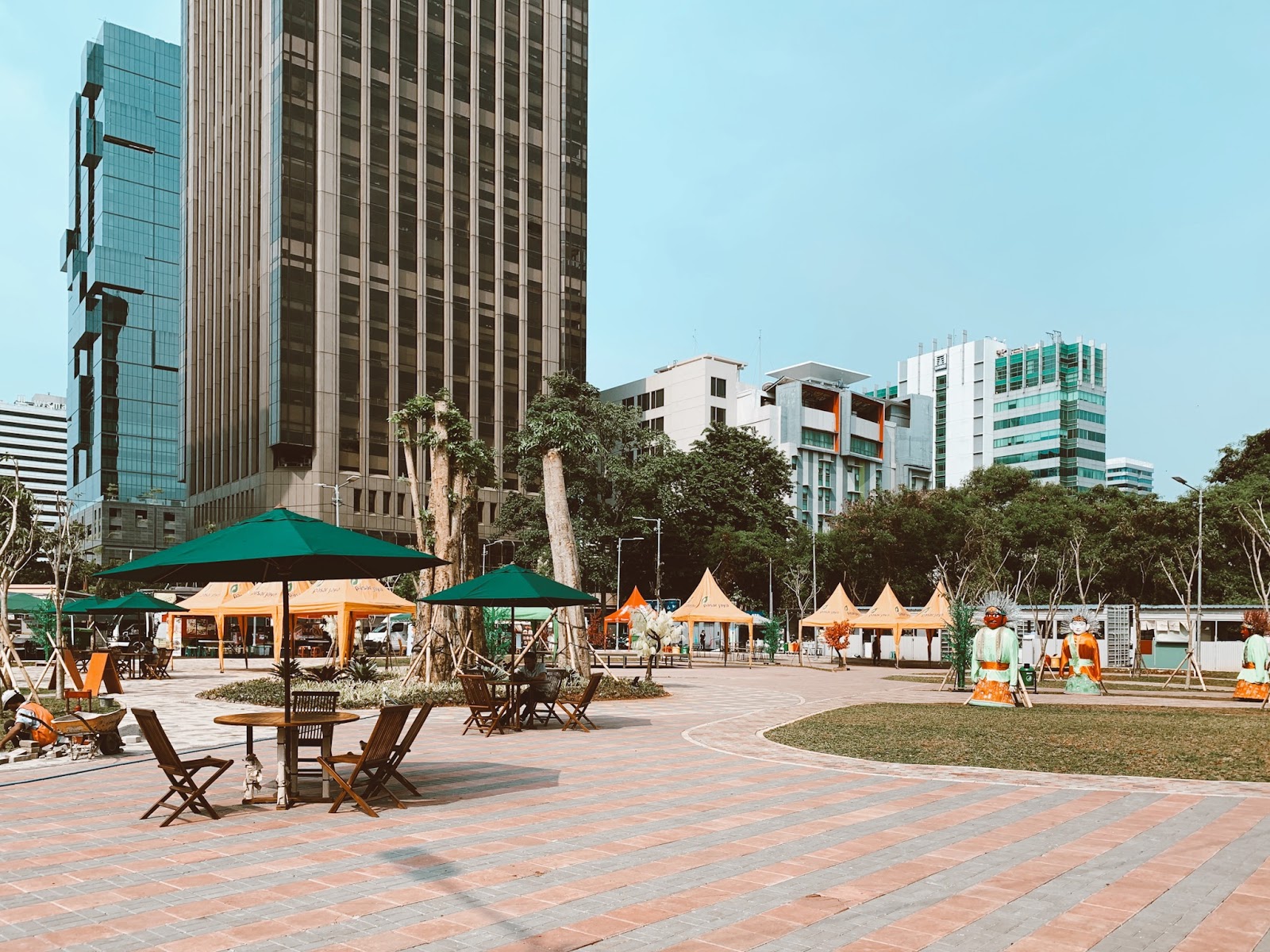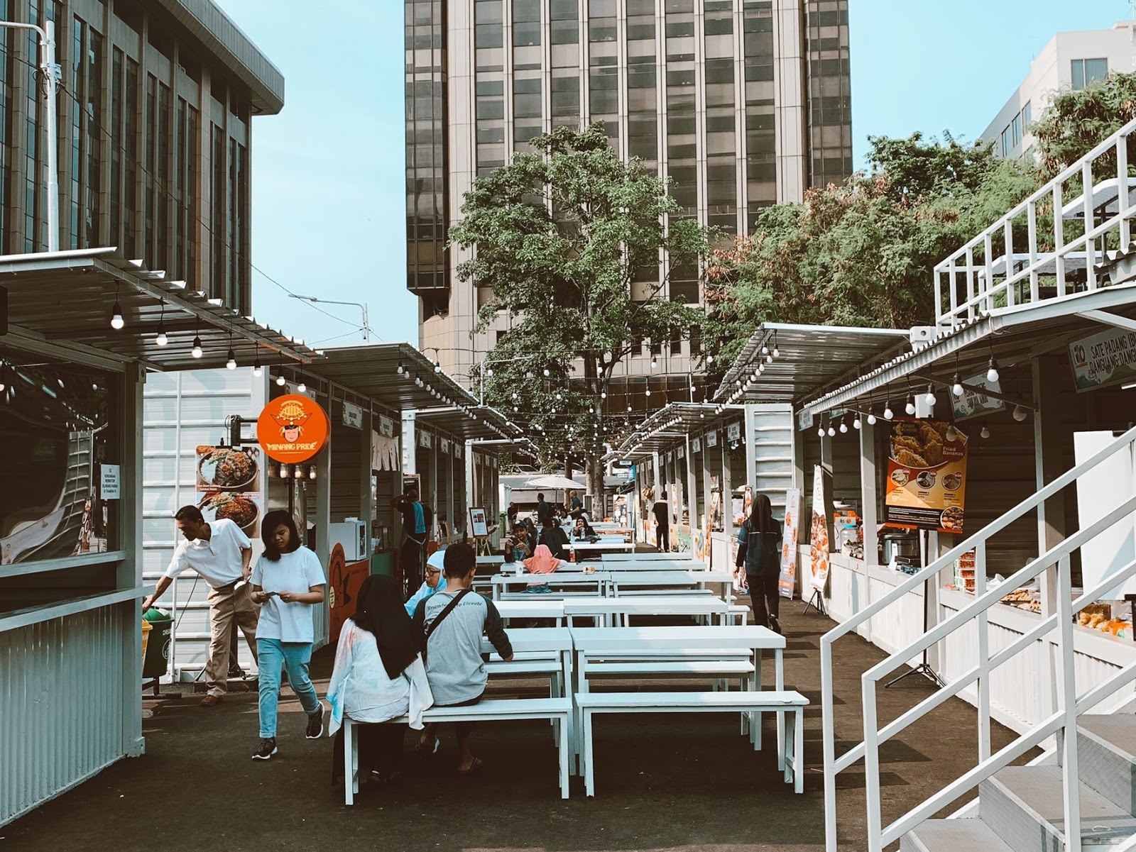Kalau dulu tempat ini merupakan lahan parkir, tapi kini sudah berubah fungsi menjadi taman dan tempat kulineran masa kini. Mumpung masih liburan dan pak suami juga sedang tidak ke kantor, jadi hari ini kita iseng buat makan siang ke Thamrin 10.