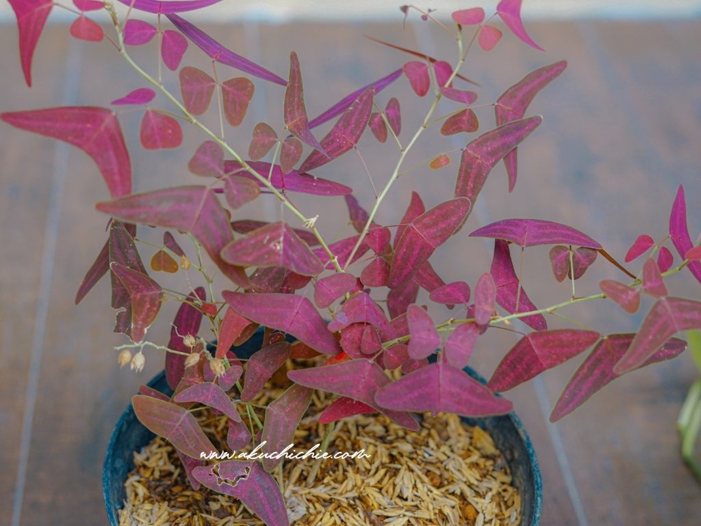 Salah satu tanamanku di rumah ada yang namanya kupu kupu Christian Verpestilionis, daunnya memang menyerupai kupu kupu dan warnanya merah keunguan gitu.